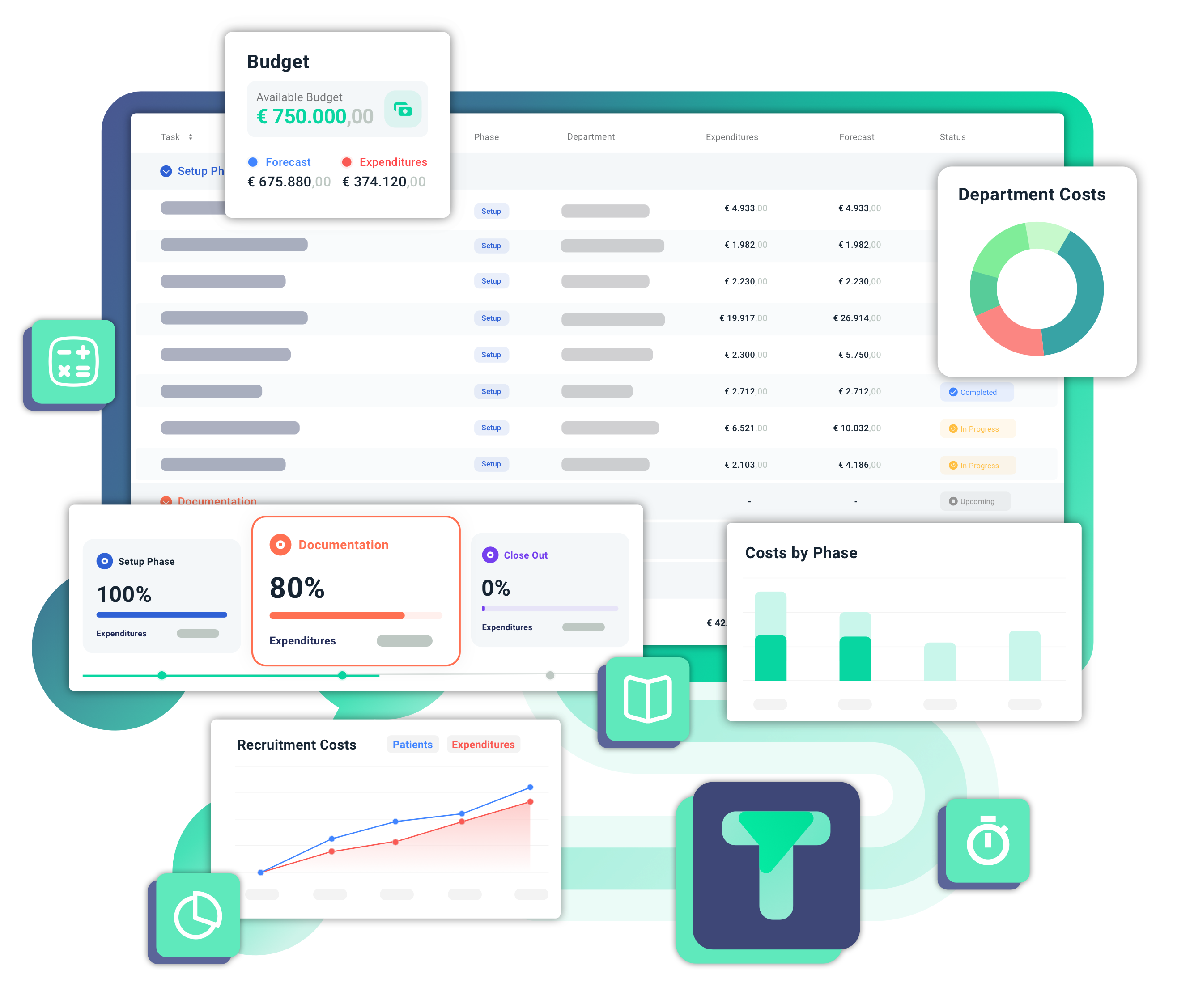 Trialytix is the first software that covers all essential budget and cost operations of your clinical trial projects.